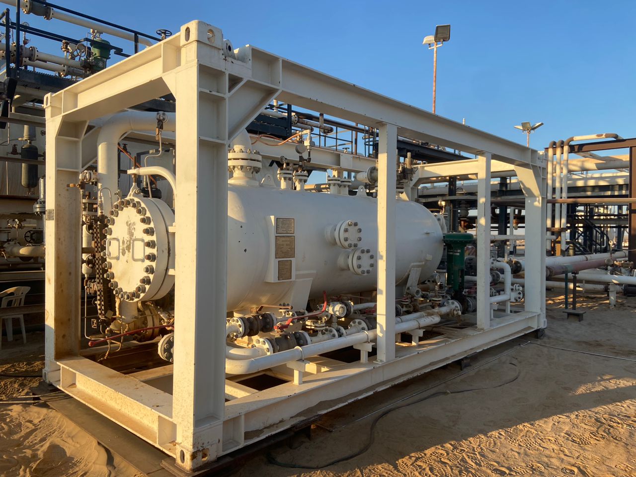 Designed for well testing, it handles high-pressure flow to efficiently separate oil, gas, and water, providing accurate data for evaluating well performance and reservoir behavior.